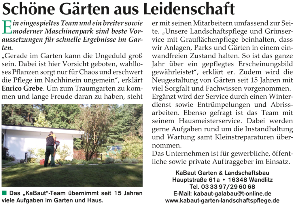 Unsere Mitarbeiter verfügen über ein fundiertes Fachwissen und eine mehrjährige Berufserfahrung im GalaBau. Wir haben bereits mit verschiedenen Kunden eine langjährige und erfolgreiche Zusammenarbeit aufgebaut. Wir würden uns sehr freuen, auch Sie bald dazu zählen zu dürfen!